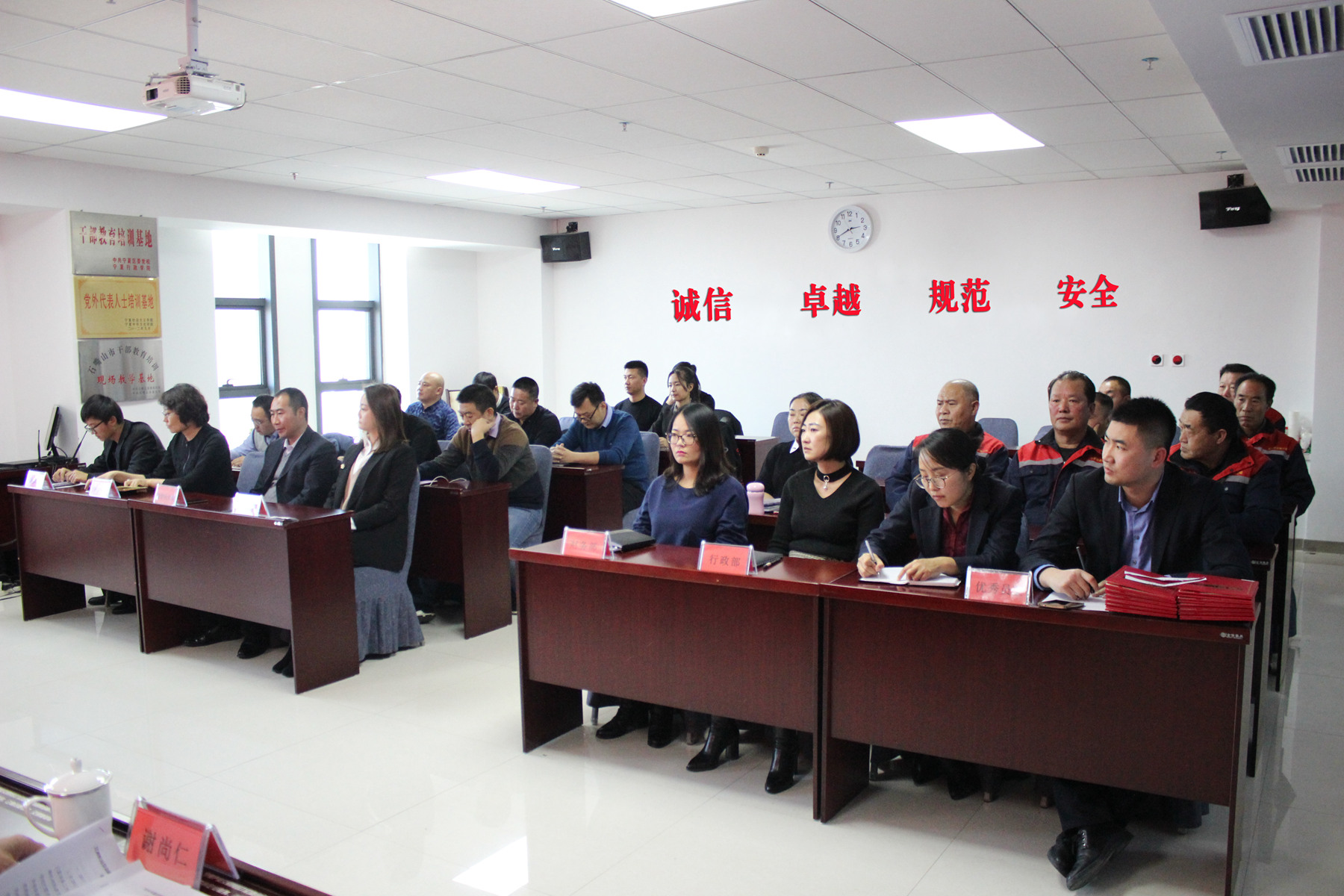 各崗位員工及監(jiān)管員代表齊聚會議室,認真聽取總結(jié)匯報。