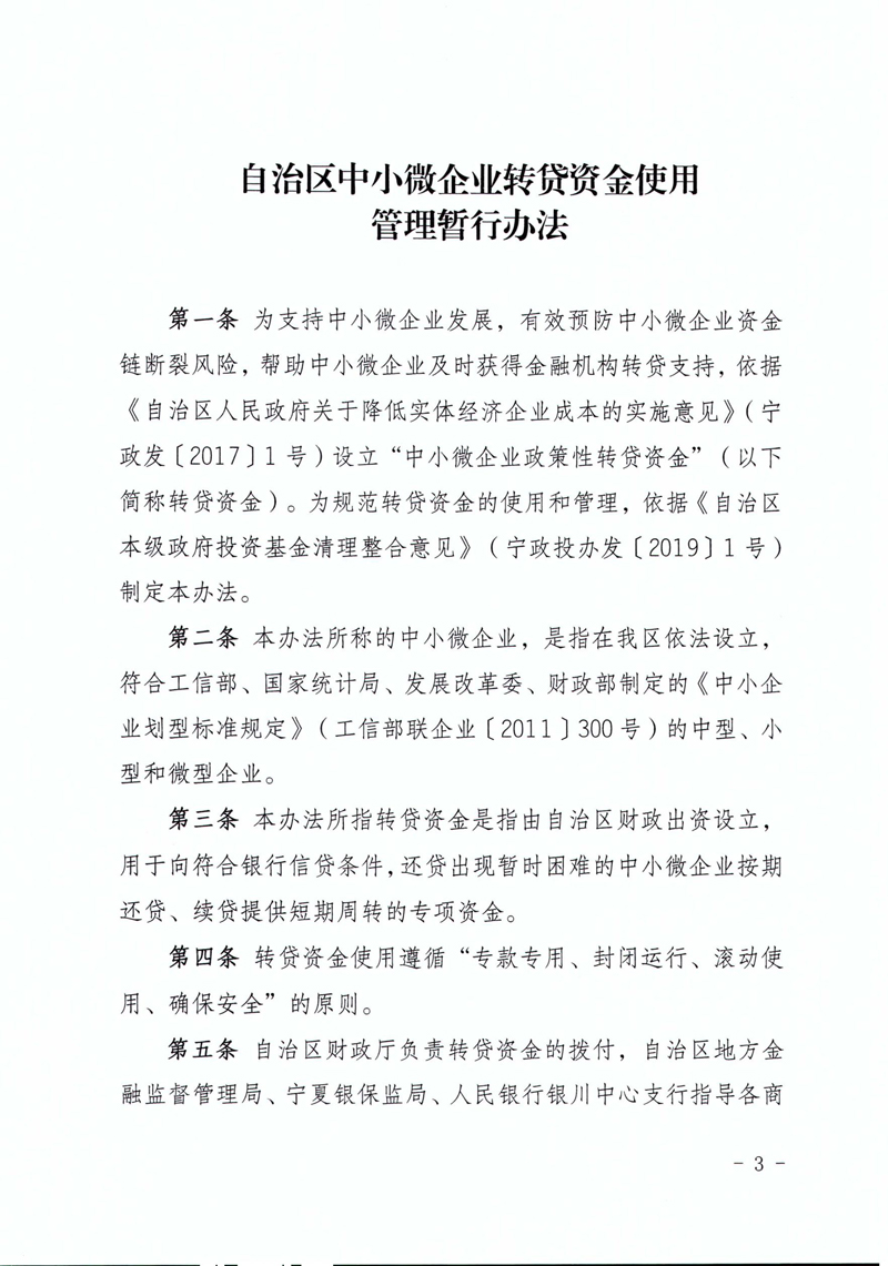 自治區(qū)中小微企業(yè)轉(zhuǎn)貸資金使用管理暫行辦法